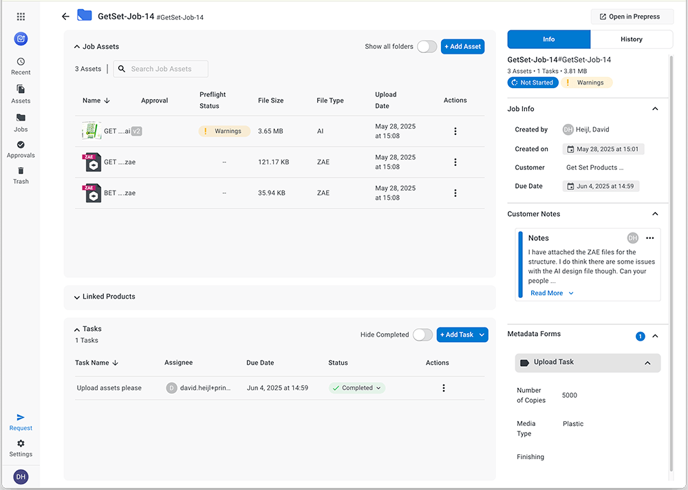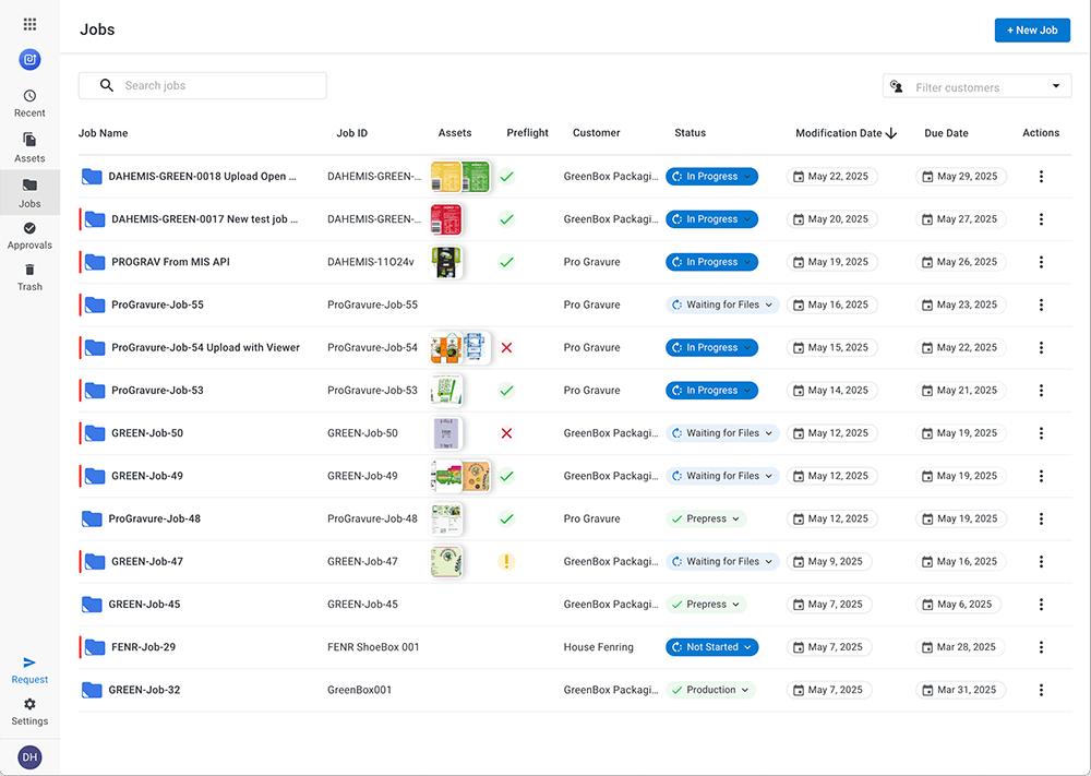 テンプレート化されたジョブ仕様により、正確性と完了度を事前に確保。プリフライトや承認を自動化し、効率を高め中断を最小化します。